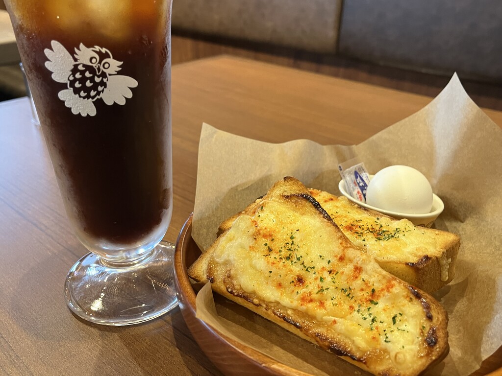 チーズトースト、ゆで卵、ドリンクのセット♪