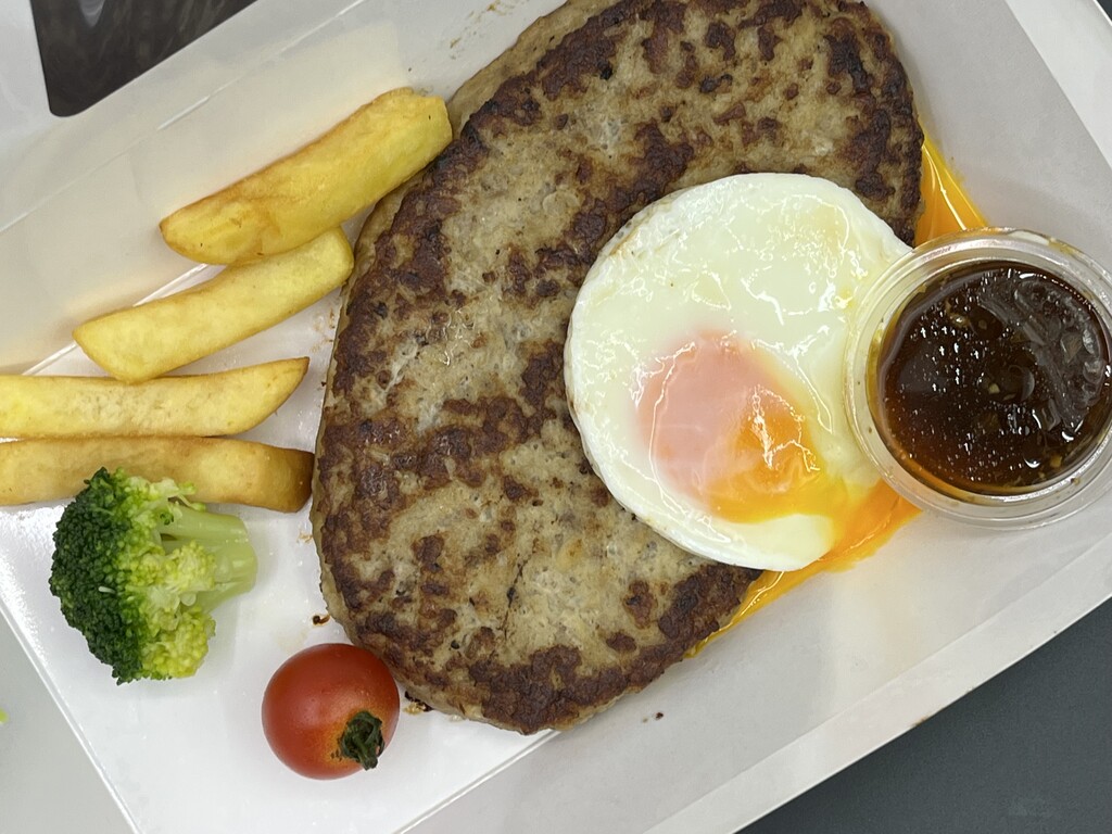 黄身とハンバーグ、
