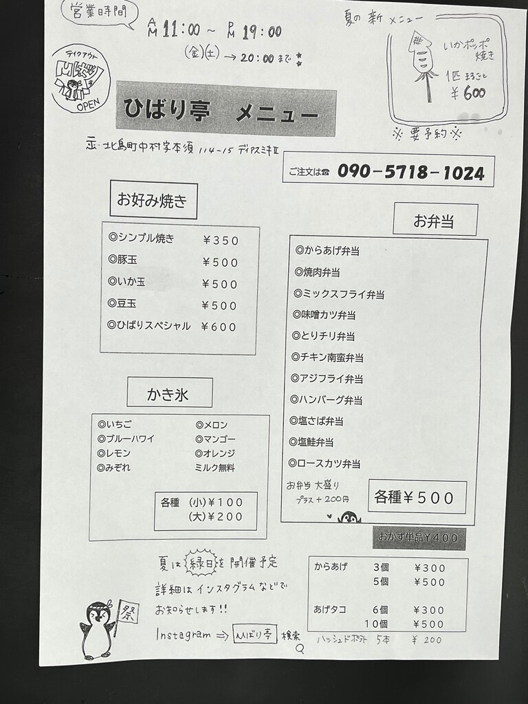 板野郡北島町に、お好み焼きとお弁当のテイクアウト専門店、ひばり亭さんが6月11日にオープンされました♪