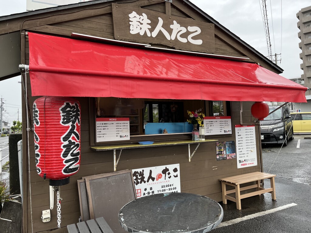 徳島市住吉、ダイレックスさんの駐車場の中に、かわいい小屋のような建物のたこやきやさん、鉄人たこさん♪