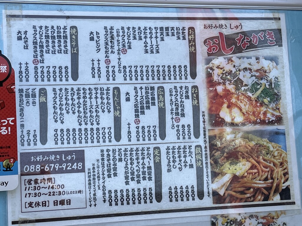 徳島市助任橋、昔ながらなお好み焼き屋さん、お好み焼きしゅうさんでテイクアウト♪