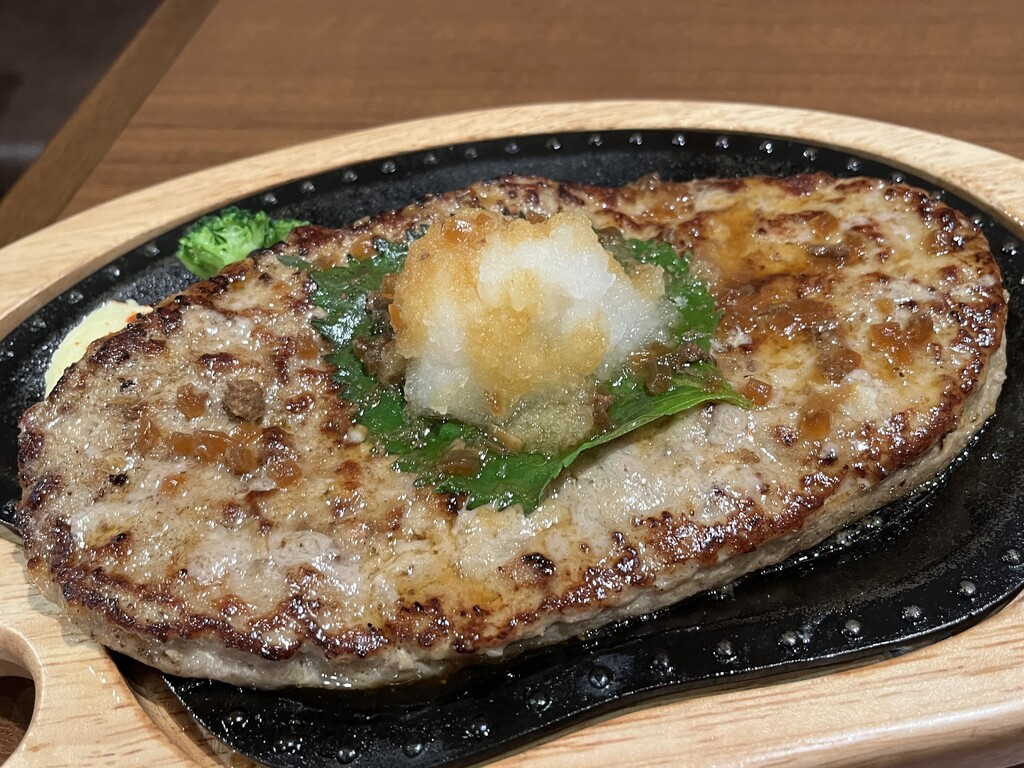 鉄板一杯のハンバーグ、大きくておいしそうやわ(*´▽`*)