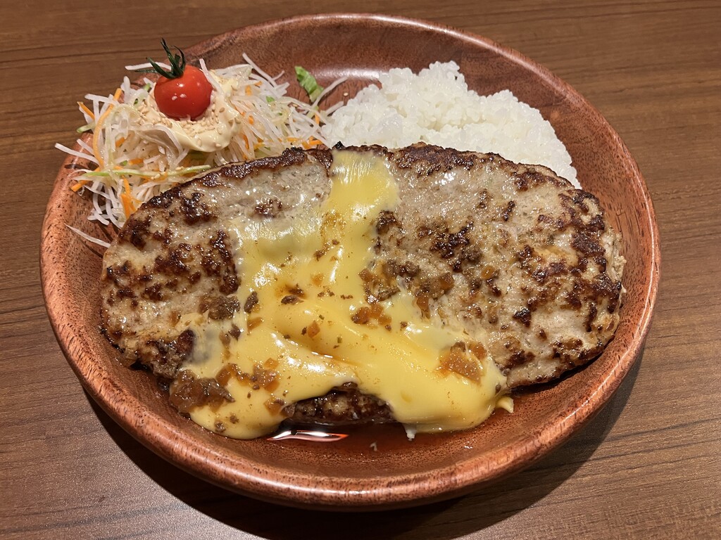 ハンバーグが大きすぎて、サラダとライスが奥に追いやられてますね(*´艸`*)