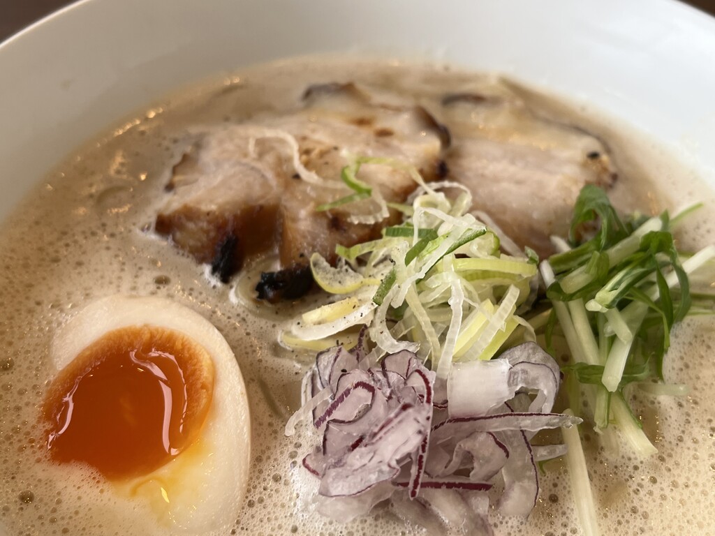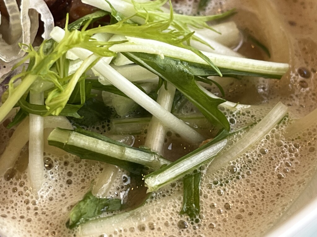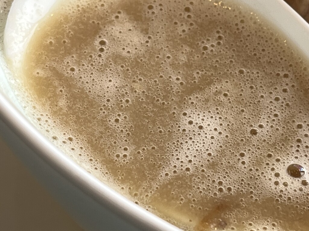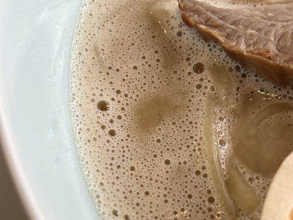 スープは泡立っていて、クリーミーなタイプ、