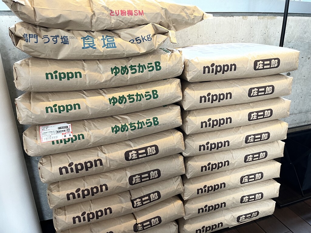 粉がたくさん積んであって、製麺機もありました♪