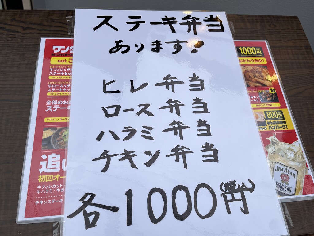 チキン、フィレ、ロース、ハラミがメインステーキのメニューで、