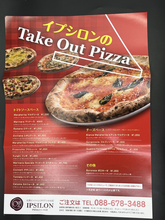 フジグラン北島のすぐ近くの、ピッツェリアバールイプシロンさんでピザのテイクアウト♪