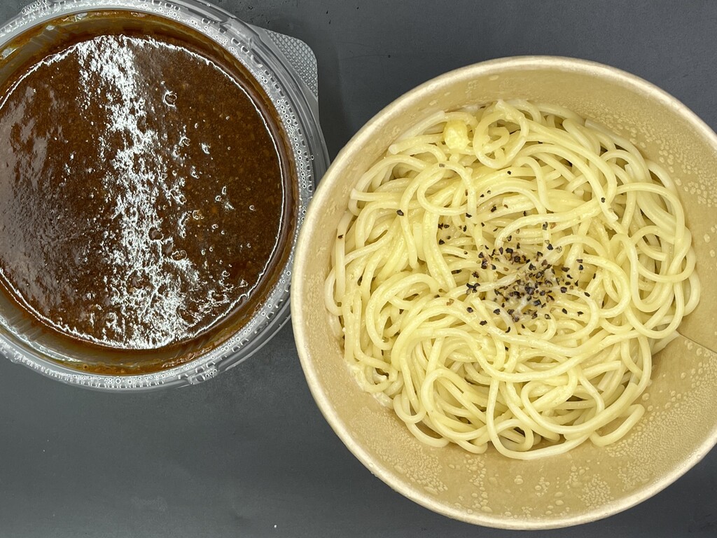 ミートソースはちょっと渋みのある濃い目のタイプ♪