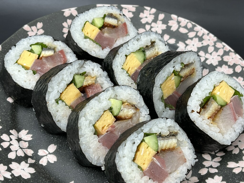 具材は赤身、ブリ、たまご、キュウリ、鰻♪