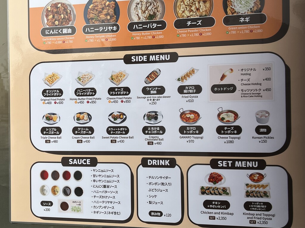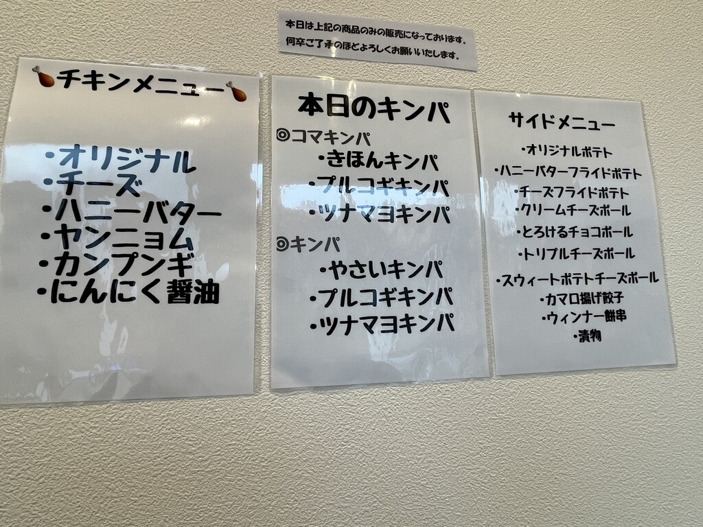 韓国風のフライドチキンと、色々な種類のキンパが買えるお店です♪