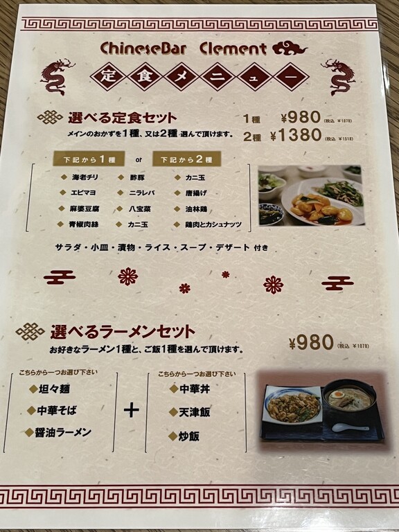 メニューは少し以前と変わっていて、