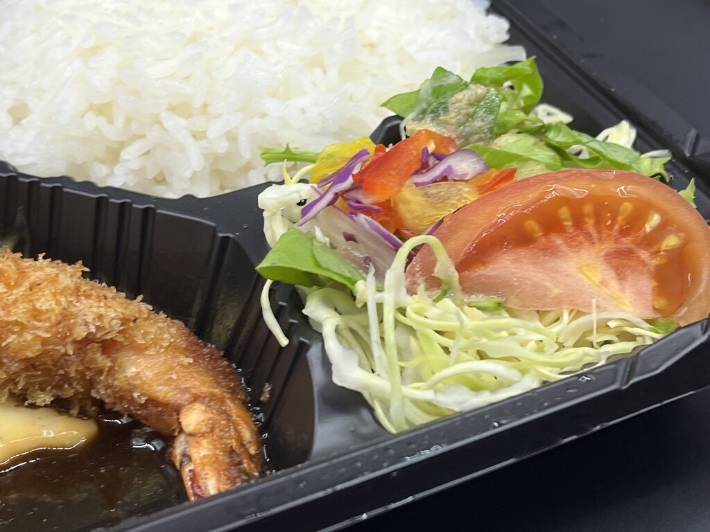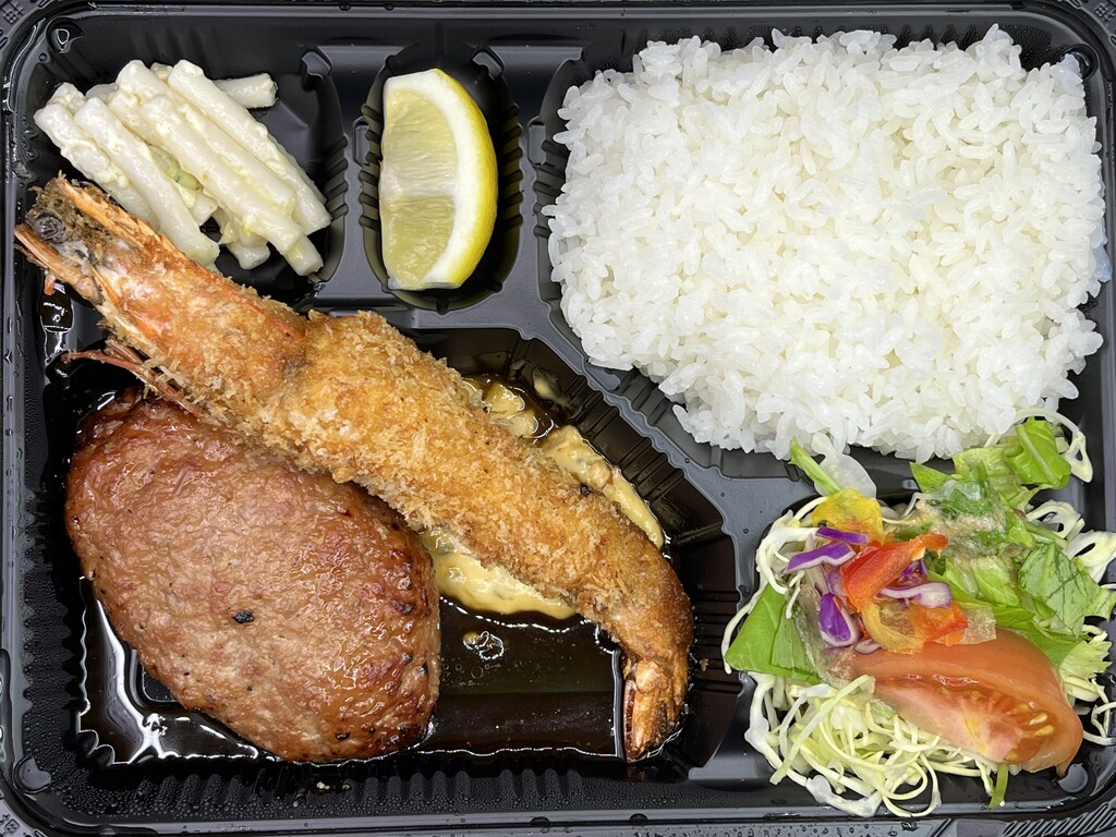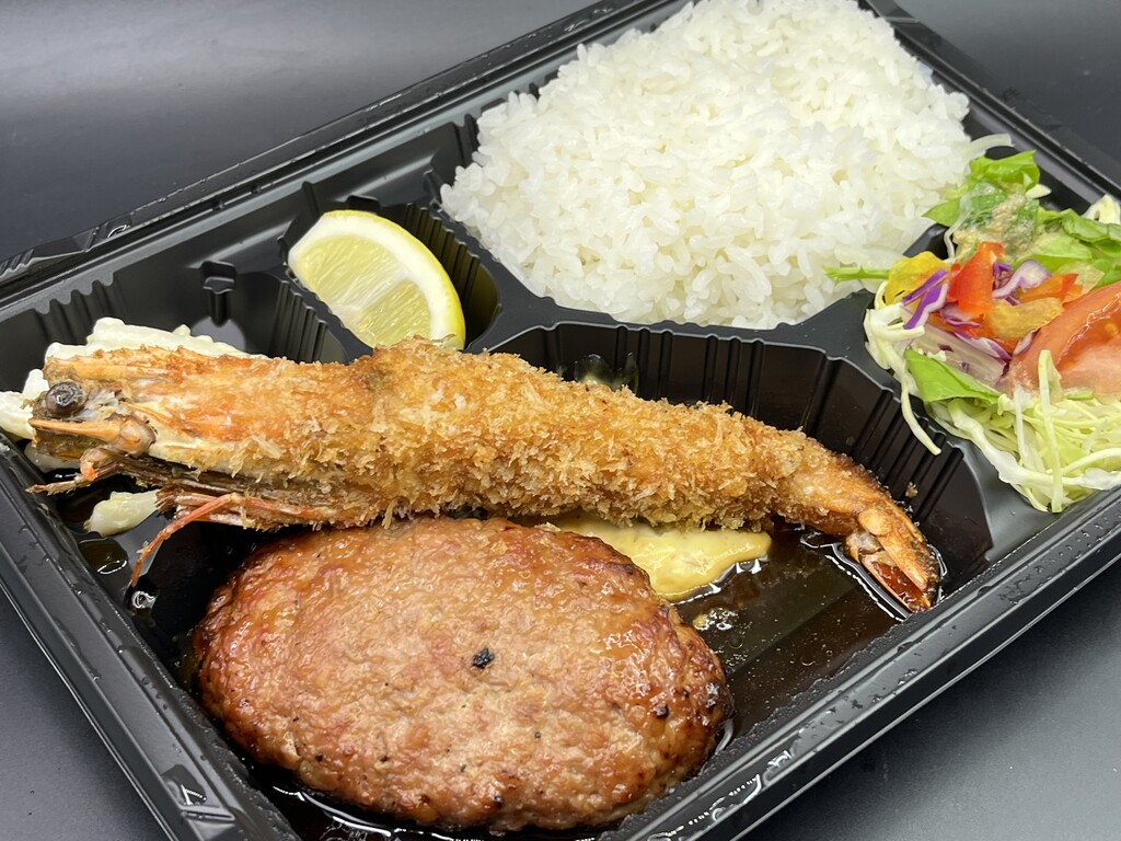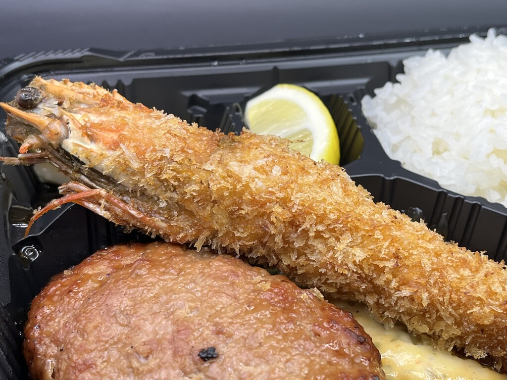 有頭エビフライと照り焼きハンバーグのAセット♪