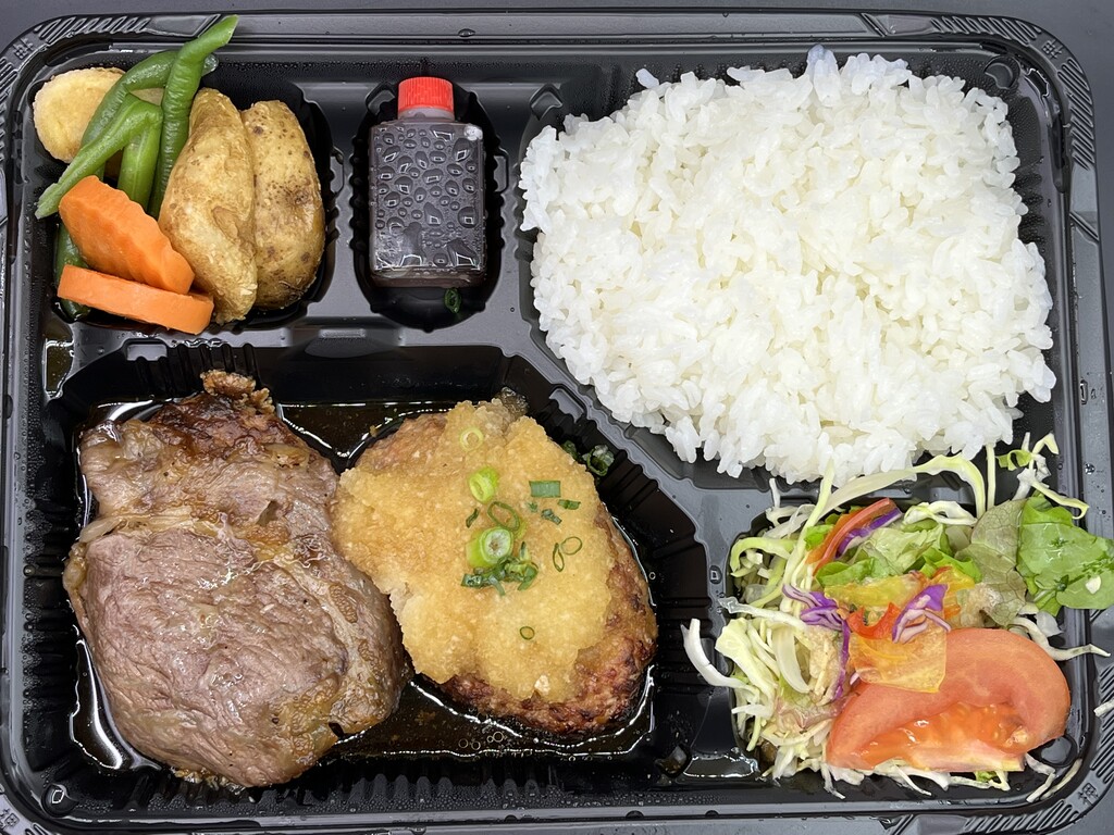 食べ応えのあるお肉と、ふっくらハンバーグの食感の組み合わせがいいですね♪