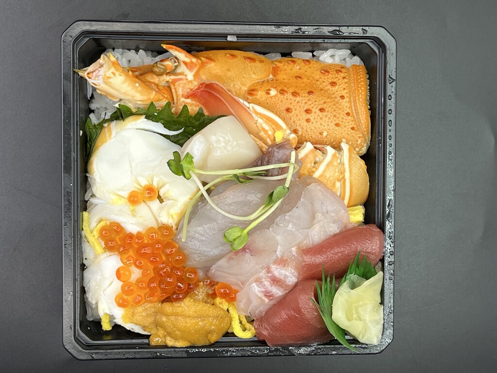 うにといくらさんの下に伊勢海老のボイルされた身が入っています♪