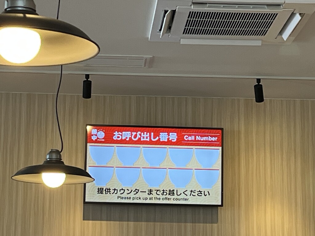 自分の食券に書かれている番号が表示されたら、