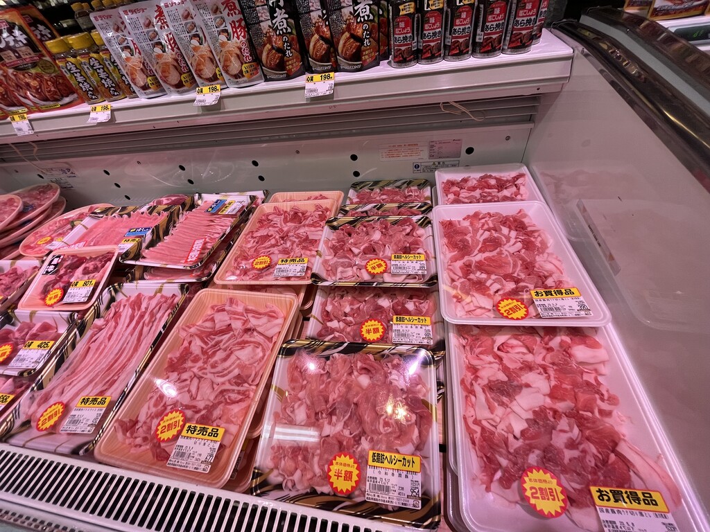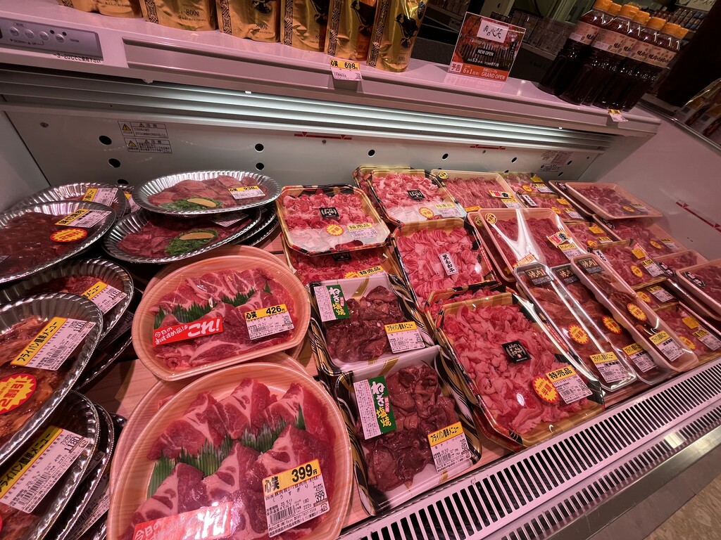 牛肉、豚肉、鶏肉、ホルモン等々色々なお肉が並びます♪