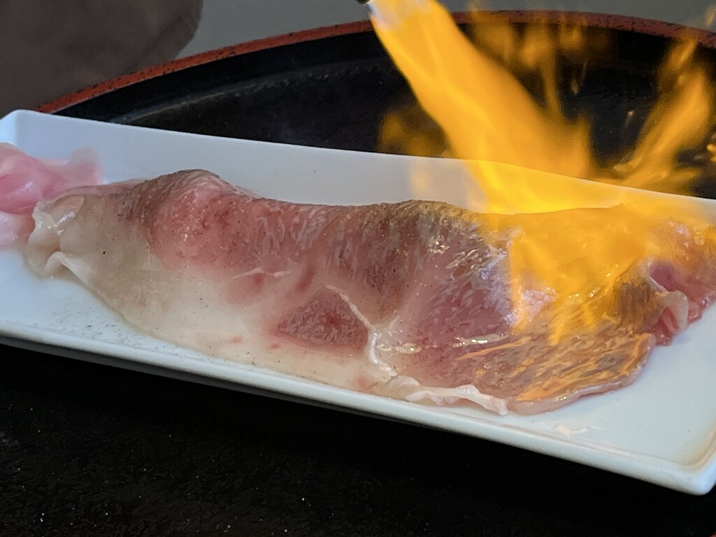 目の前で炙っていただける炙り肉寿司♪