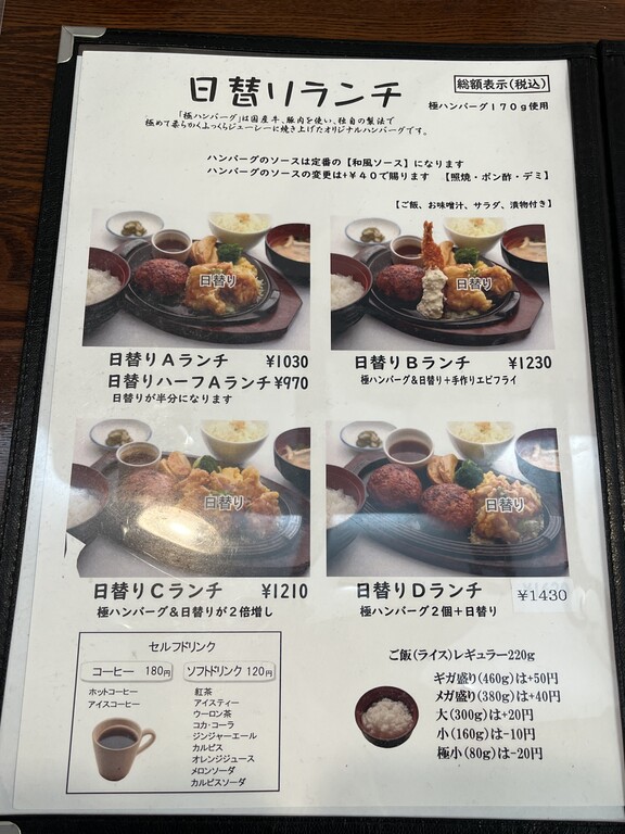 コスパもお味もいい満足なハンバーグランチですね♪