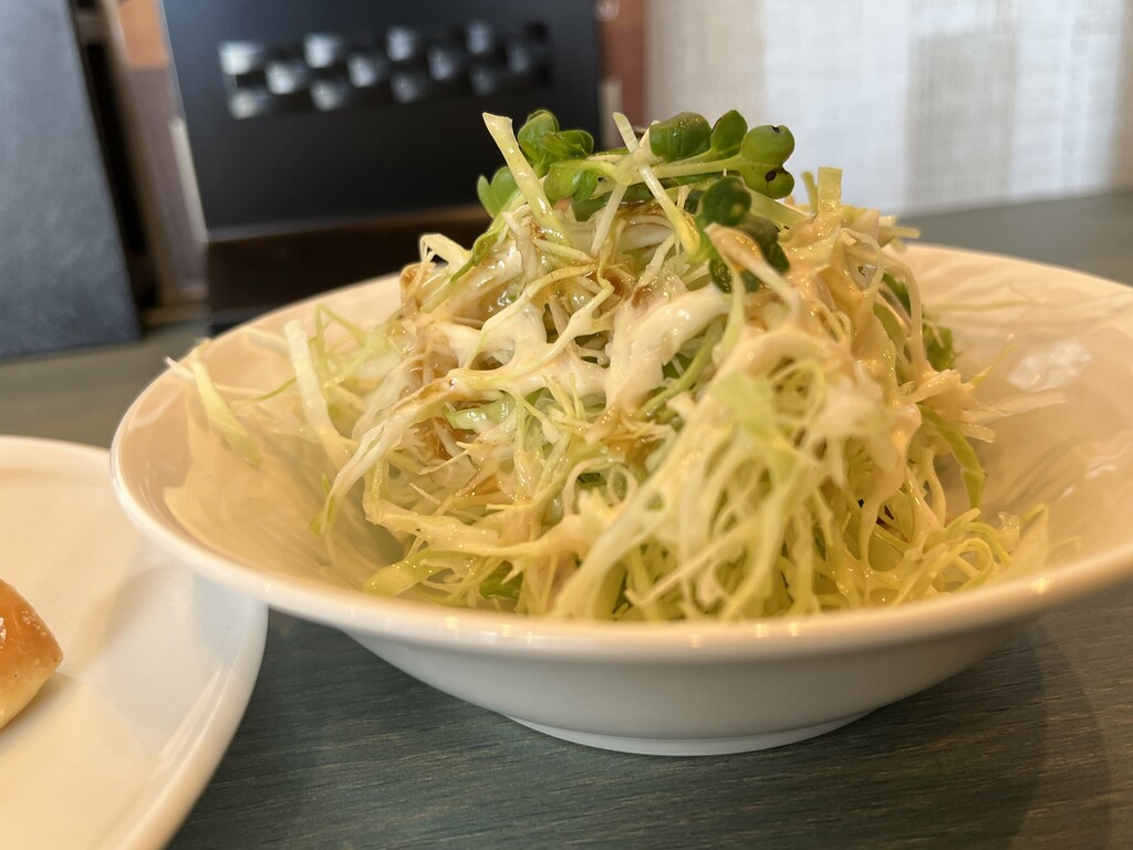 先にパンとミニサラダが運ばれてきます♪