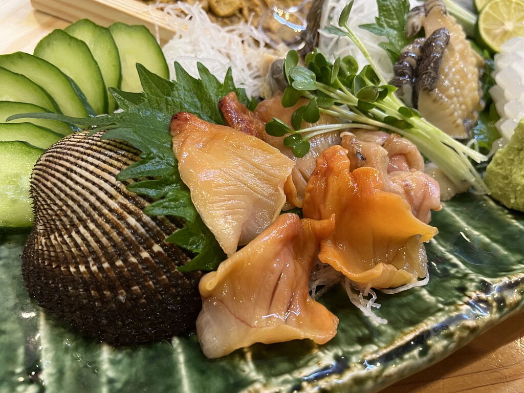 貝3種、ウニ、モンゴウイカの盛り合わせ♪