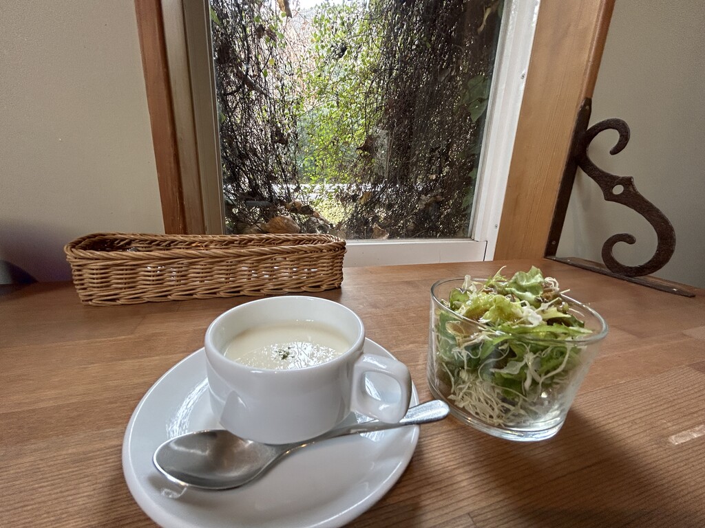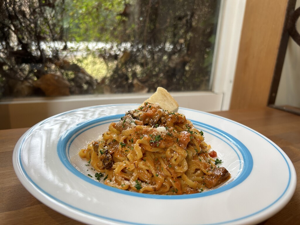 外の自然を見ながら食べるパスタは贅沢ですね♪