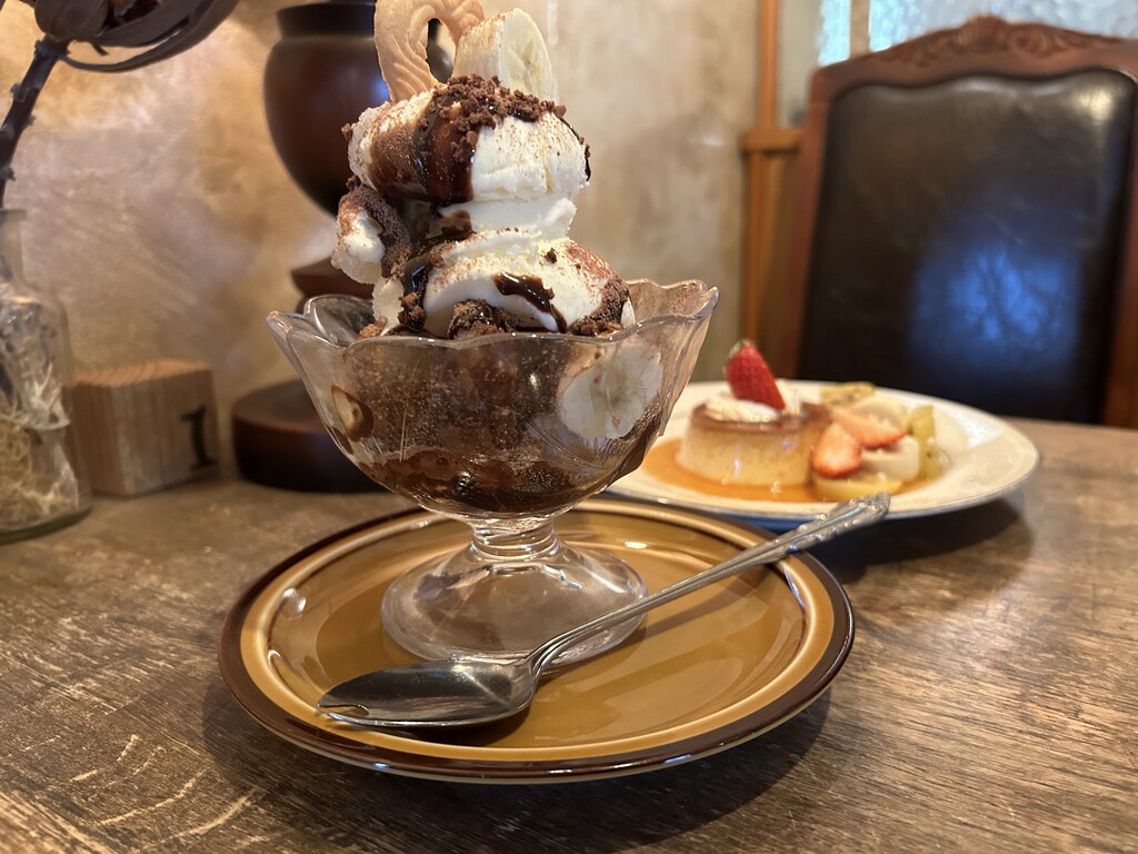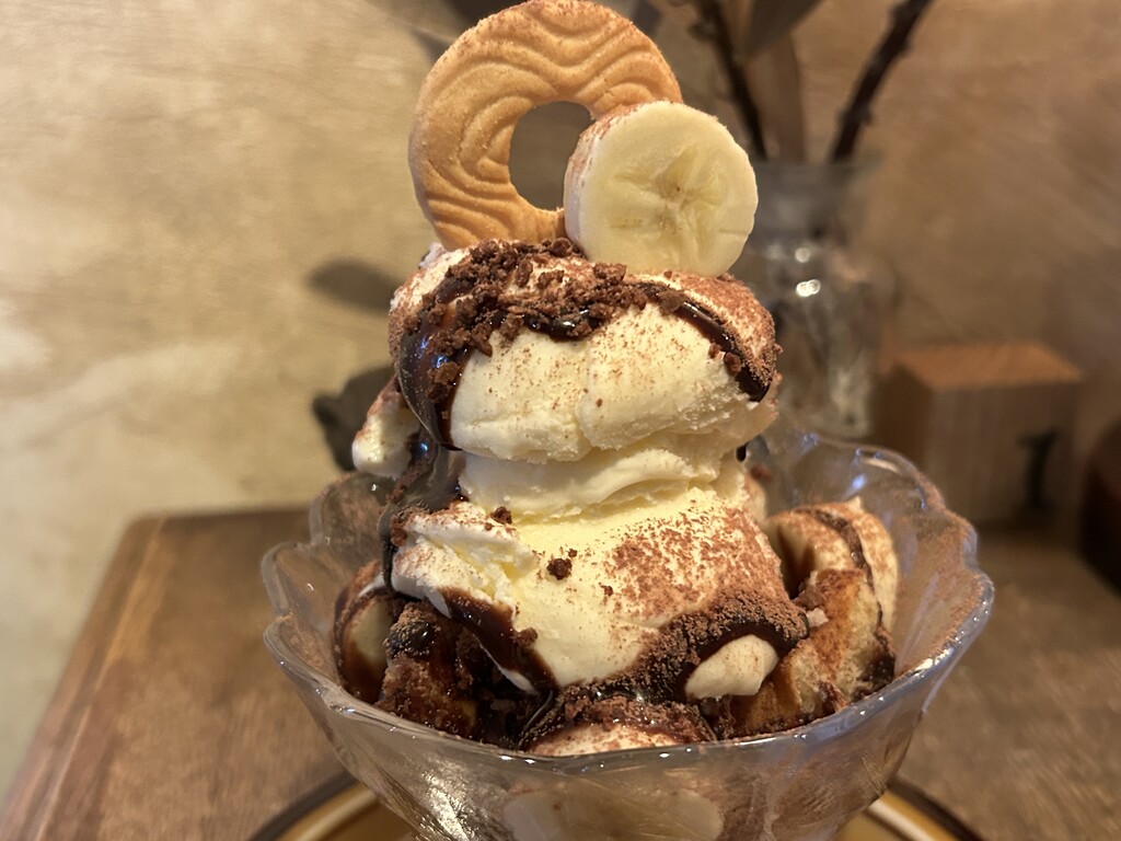 たっぷりアイスにチョコソースにバナナの組み合わせは