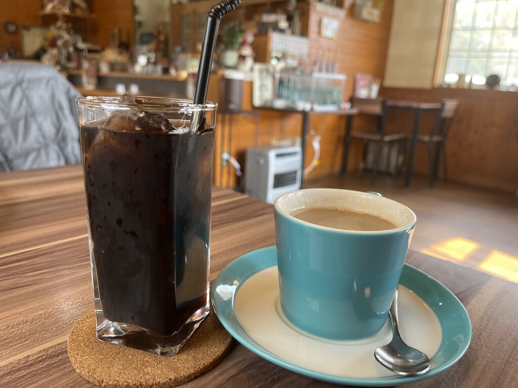 ドリンクはホットラッテにアイスコーヒー♪