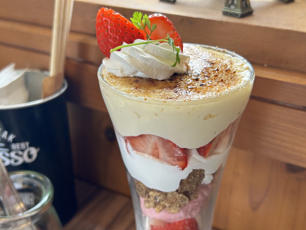 デザートはいちごのクリームブリュレパフェ♪