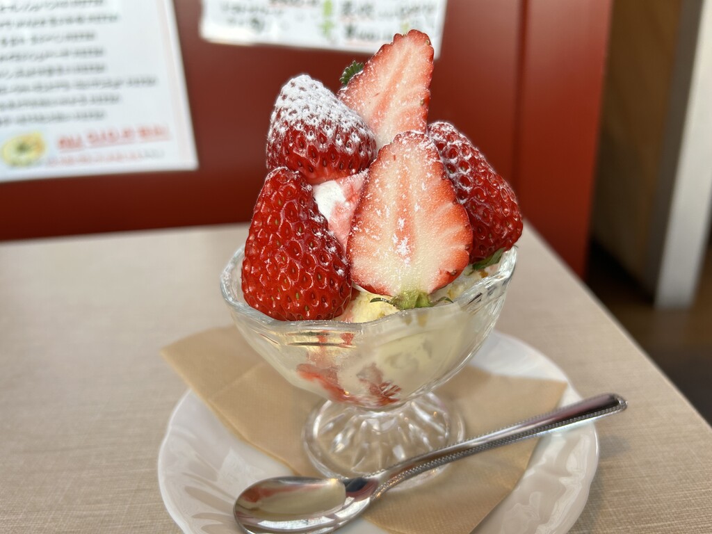 立派なサイズの苺がたっぷりなイチゴパフェ♬