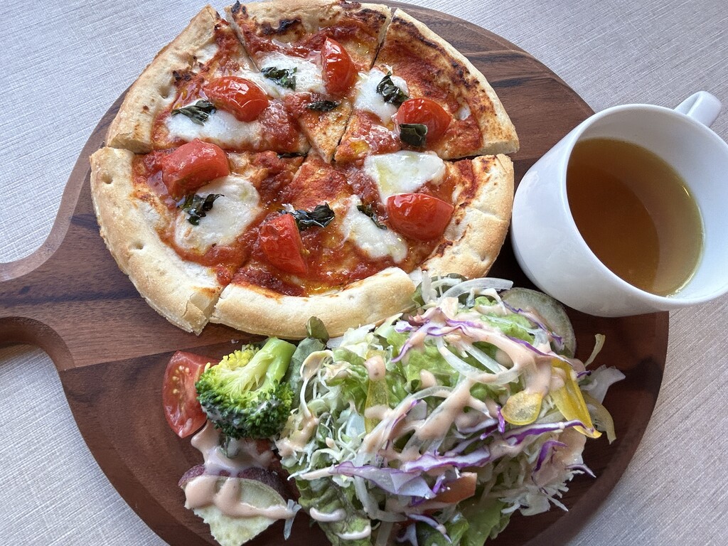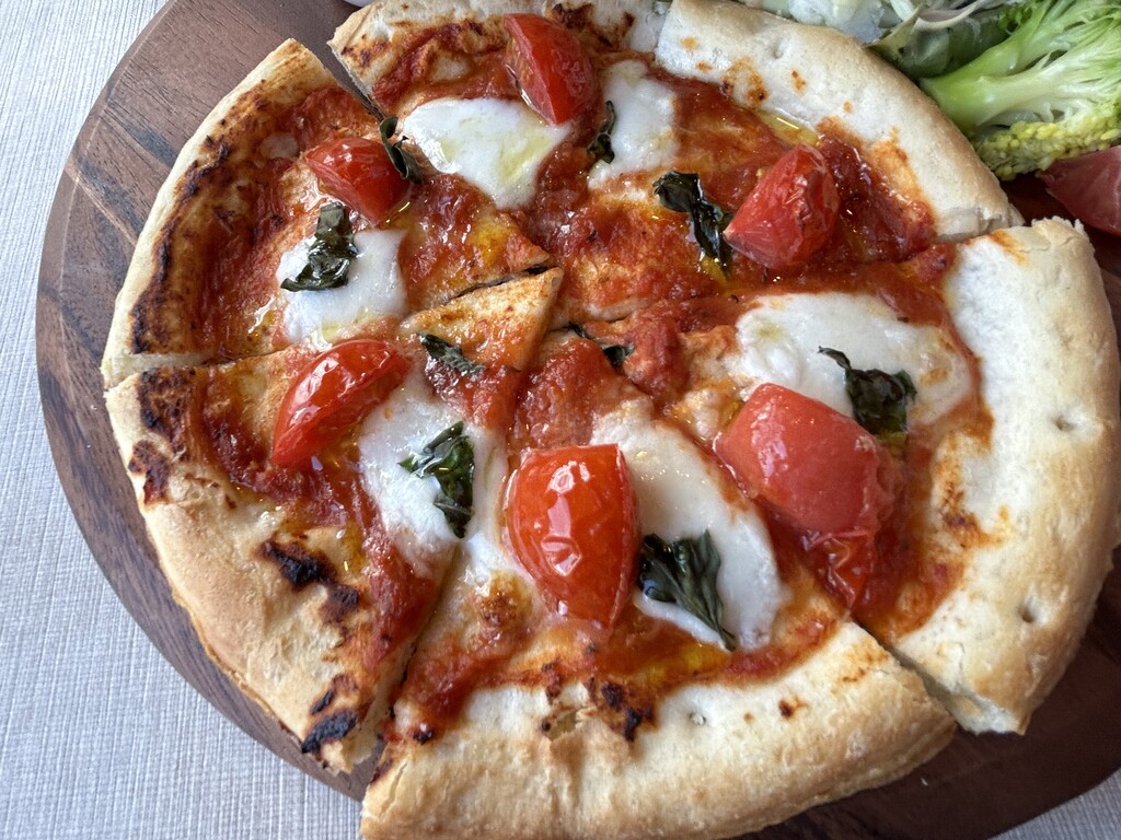 もっちりとした生地にモッツアレラとトマトソースにバジルに
