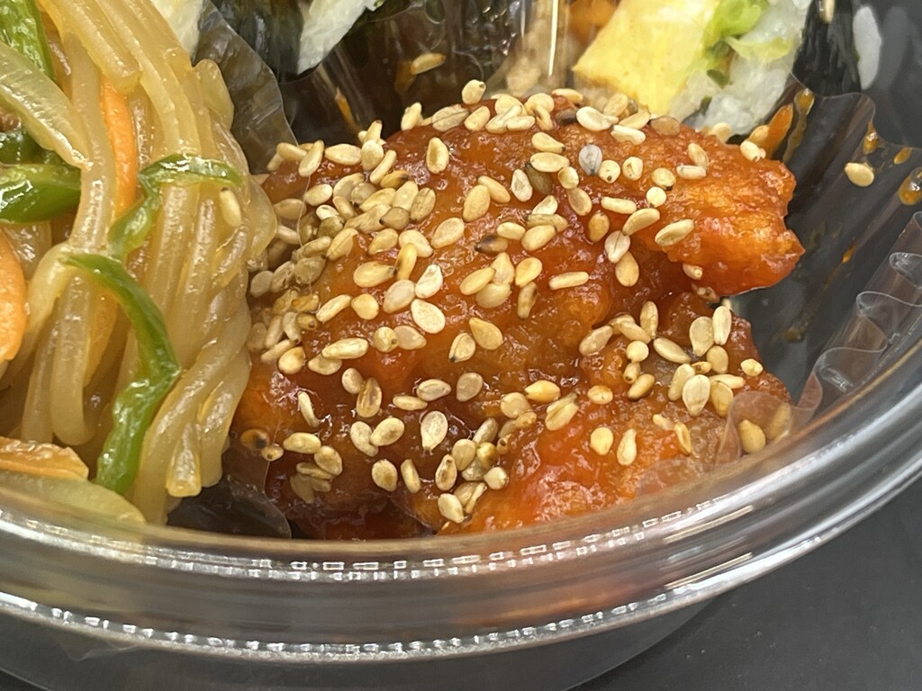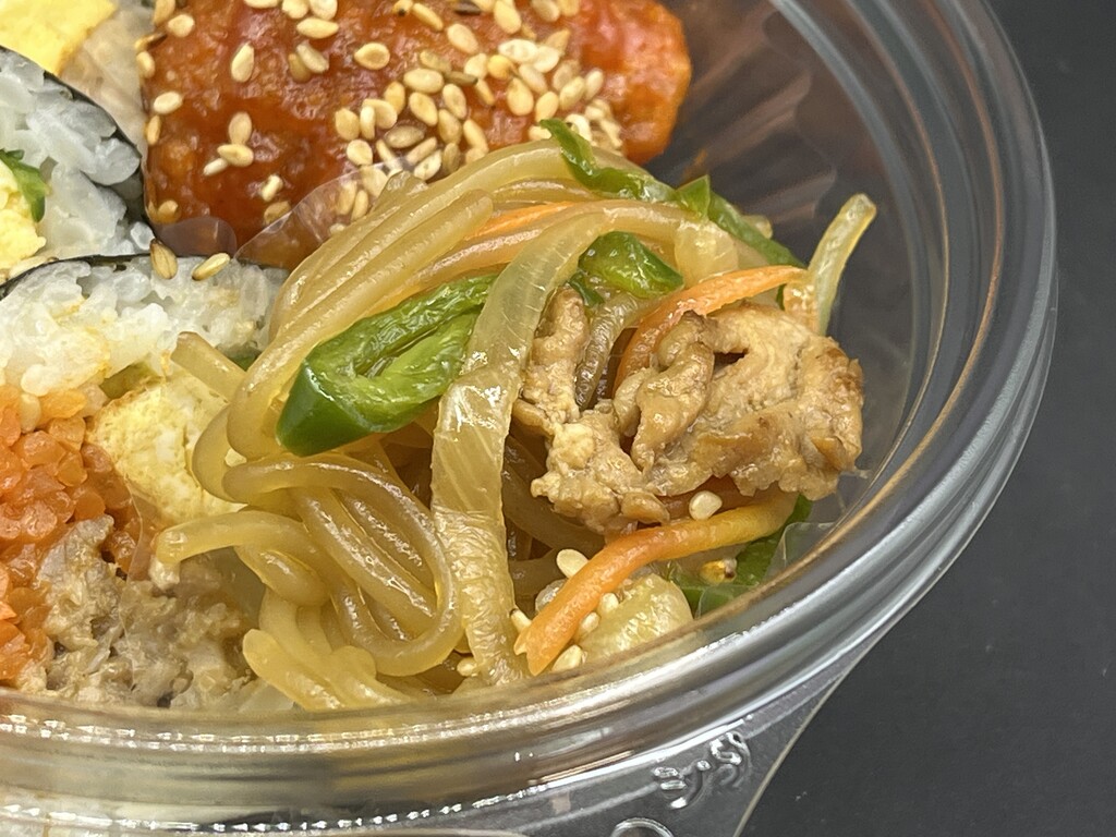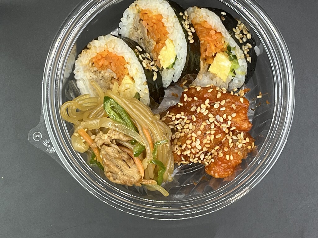 牛肉キンパ、チャプチェ、ヤムニョムチキンのセット♪