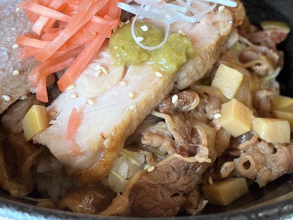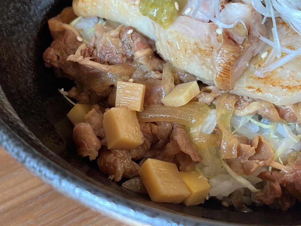 ベースはは牛丼のお肉メインの山の幸丼♪