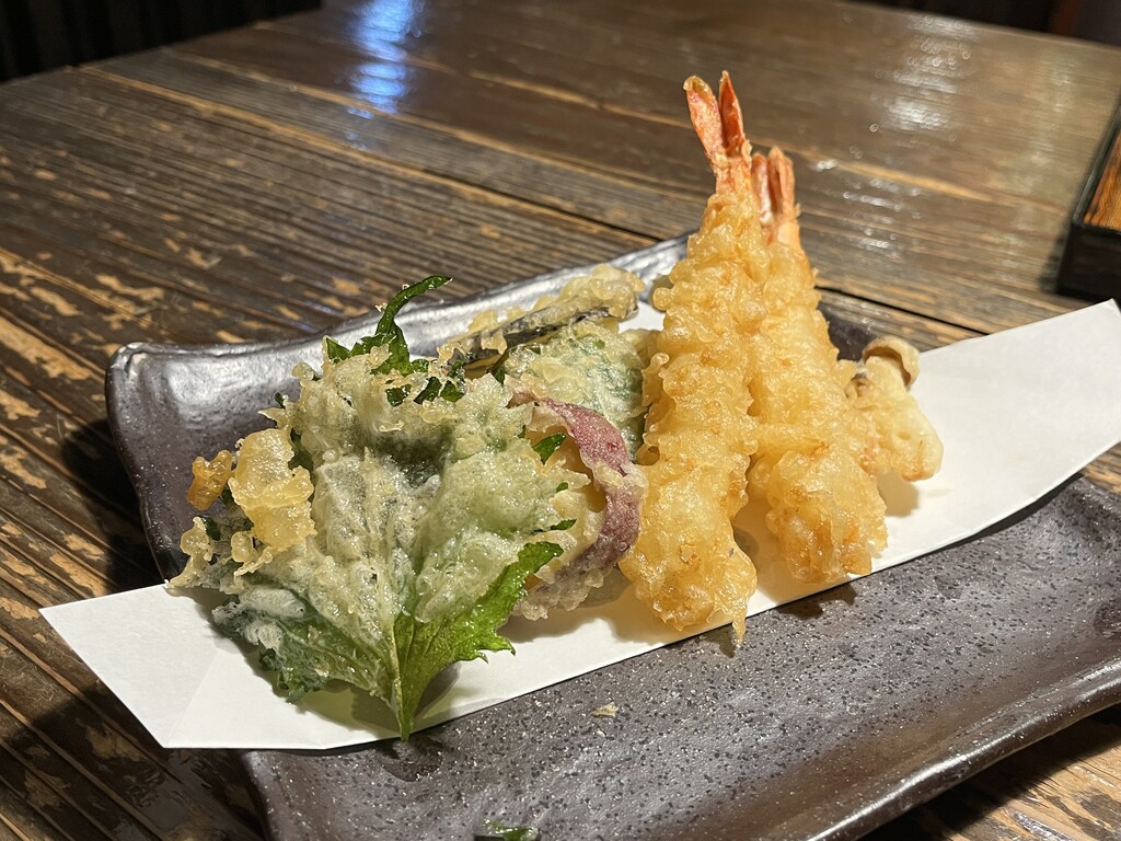 海老天2本と山菜などの入った天ぷら盛り合わせ♪