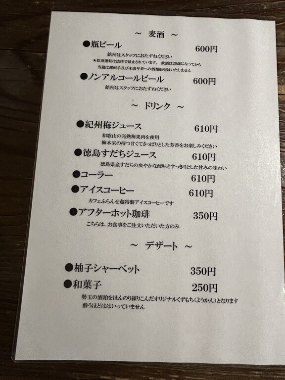 お酒などのドリンクメニューも♪