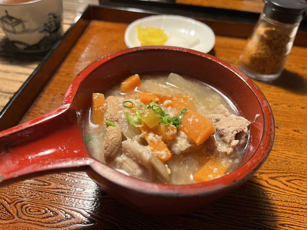 大きく切られたお野菜に、鮭、豚肉などが入った酒粕汁