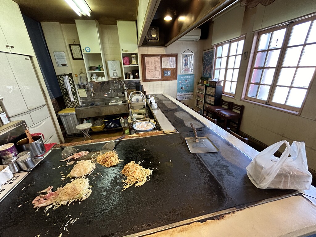 レトロな店内ではテイクアウトの広島焼が焼かれています♪