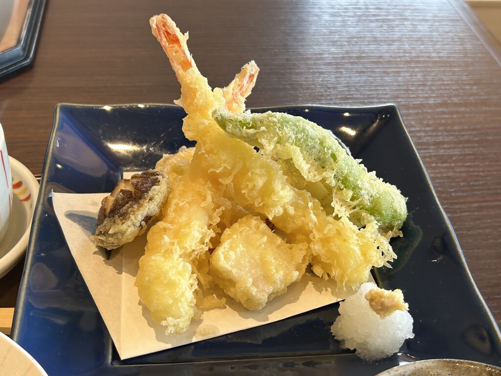 海老天二本の天ぷら盛り合わせ♪