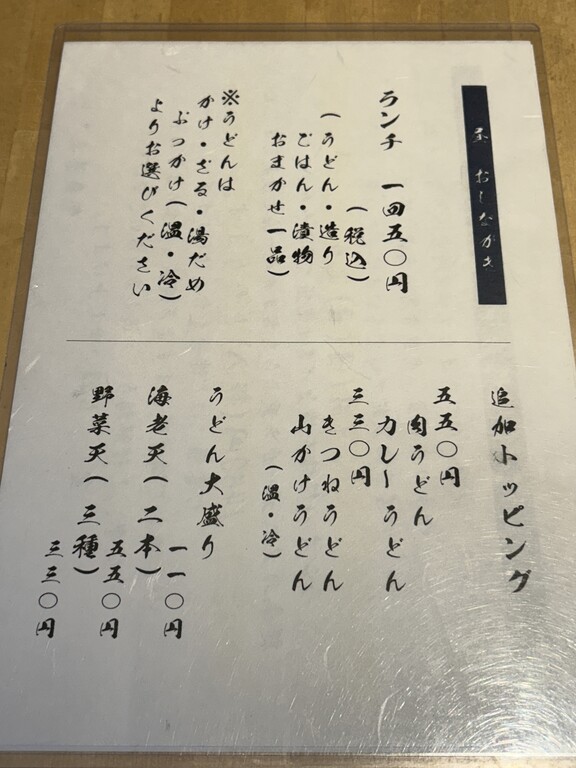 ランチは一択でおうどんの種類を選べます♪
