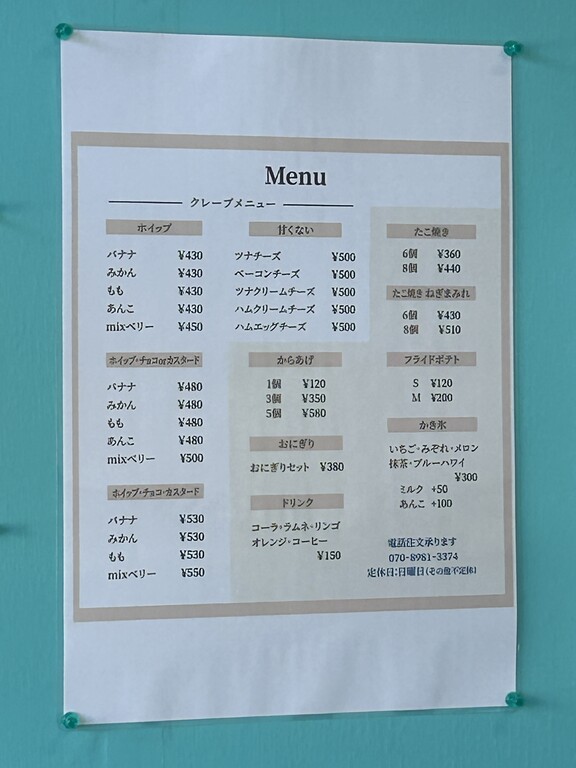 クレープメインでおにぎりやたこ焼き揚げ物なんかを販売するお店です♪