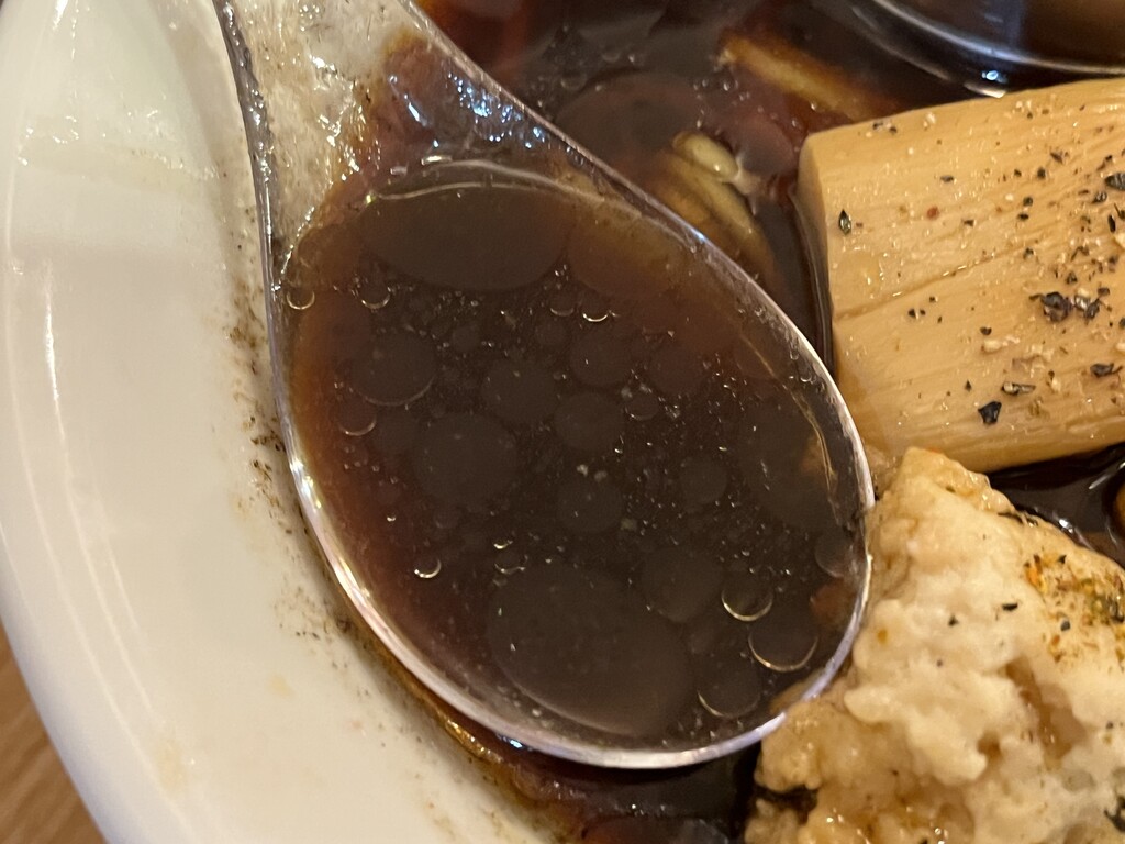 鯛の油を焦がしたのが入っている、香ばしいパンチの効いたスープです♪