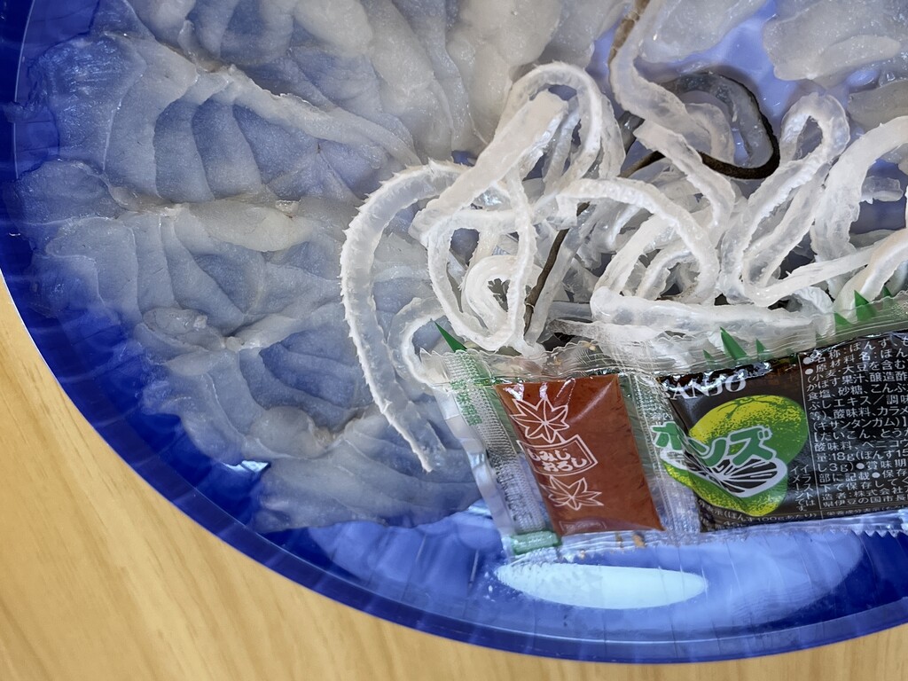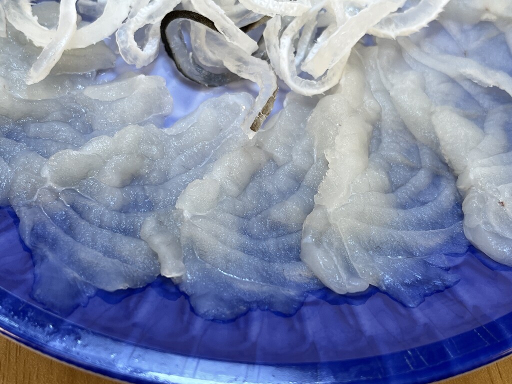 ふぐの種類はわからないですけれど、肉厚ムニュムニュなてっさ