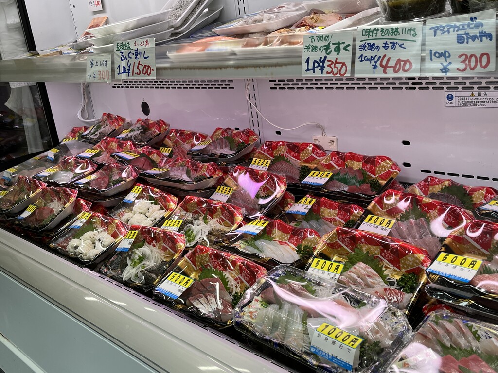 お刺身コーナーにはイセエビやてっさなどの高級なお刺身や