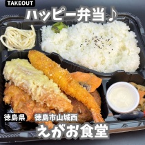 🍱♪徳島市山城町のえがお食堂さんでテイクアウト♪えがおな看板♪ この投稿をInstagramで見る えがお食堂(@egaosyokudou)がシェアした投稿 テイクアウトメニューはこんな感じ♪ ハッピー弁当♪おかずたっぷりハッピー弁当♪照り焼きハンバーグ♪むっち ...